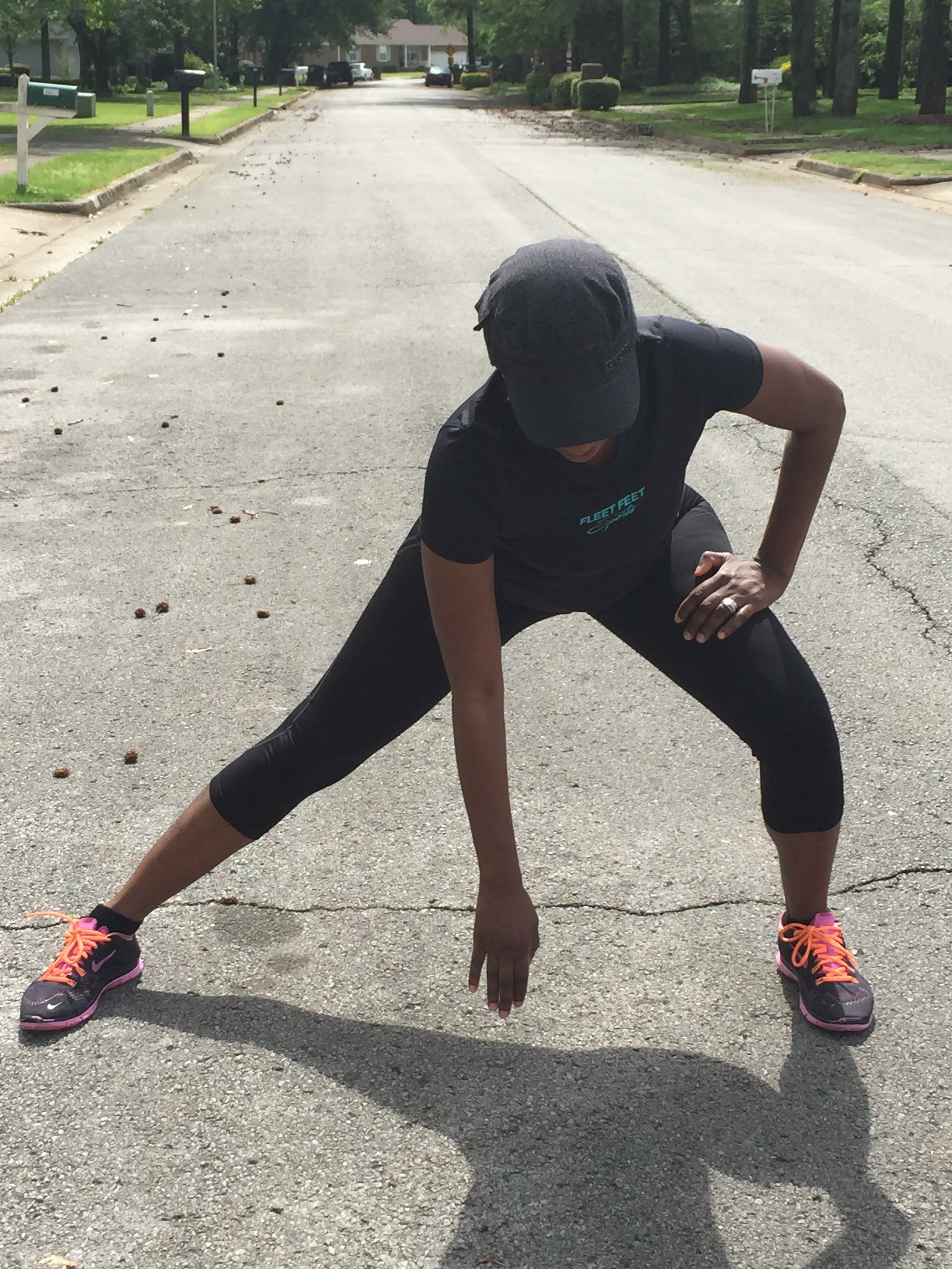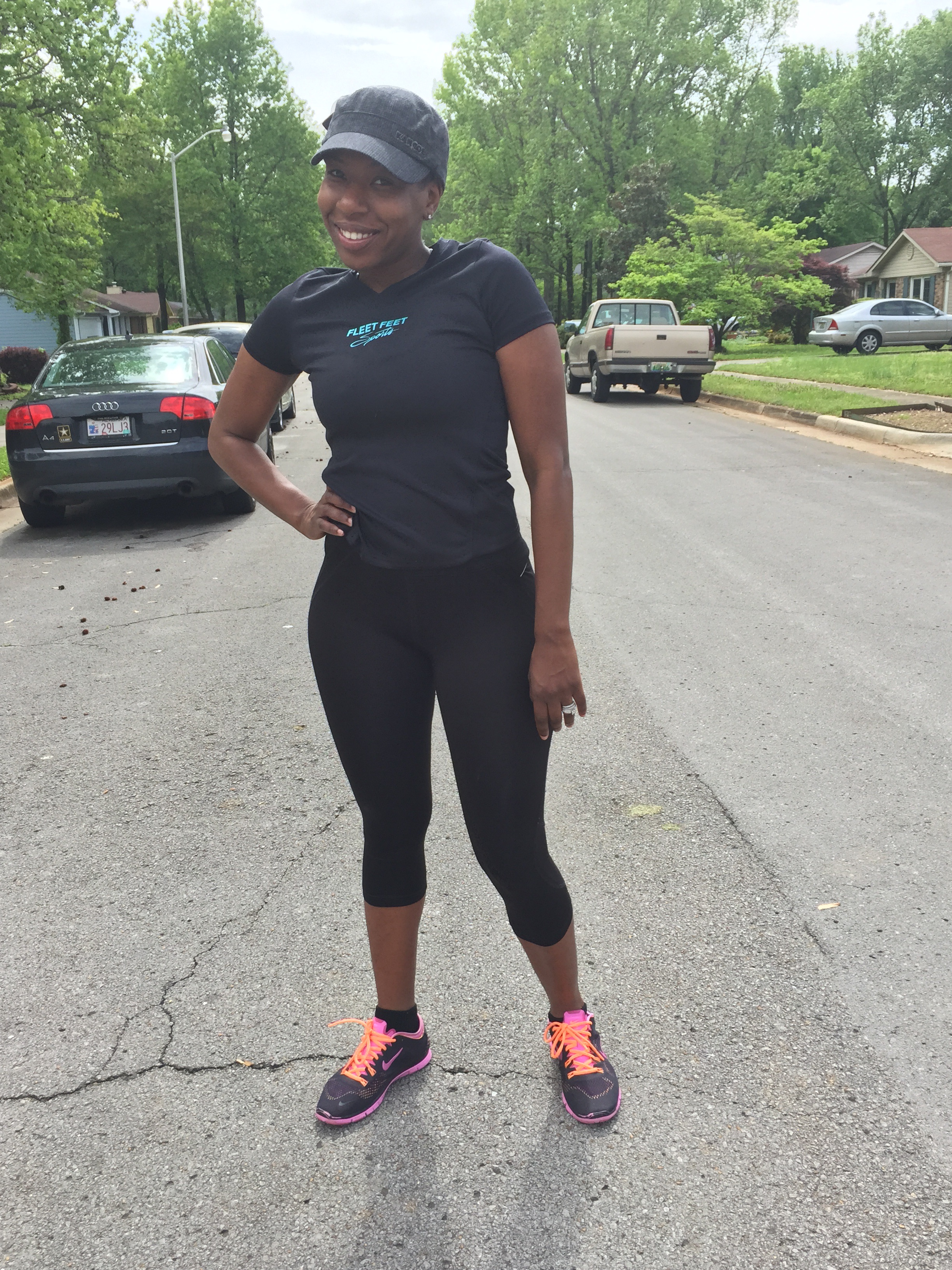 Outfit details: Thrifted Fleet Feet Top: .25 (Neighborhood Store), Thrifted Nike Bottoms: $2.25 (Neighborhood Store), Shoes: Nike Free $19.99 (Rack Room Shoes)