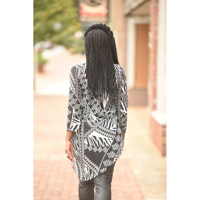 I paired it with my thrifted chiffon high low top and my thrifted pleather pants for a day out with my hubby!