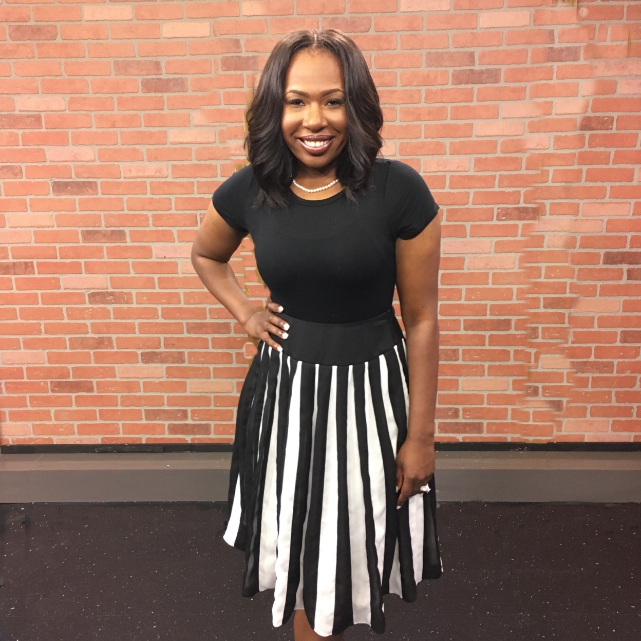 Black and white always fun to wear. I like the black top paired with a black-white striped skirt.