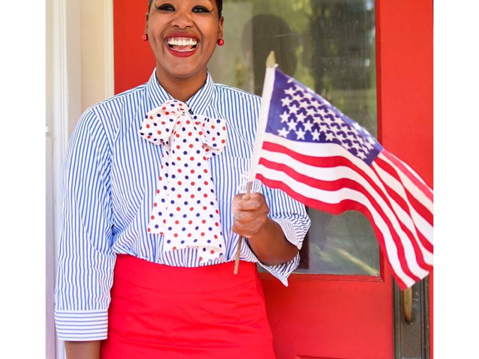 - @morethanyouraverage – Morethanyouraverage was able to mix both polka dot and stripes, while pairing this sailor skirt! In addition, she offered outfits catered for July 4th on her website! Check out her blog where she features plus size thrifted fashion and personal shopping options. www.morethanyouraverage.com