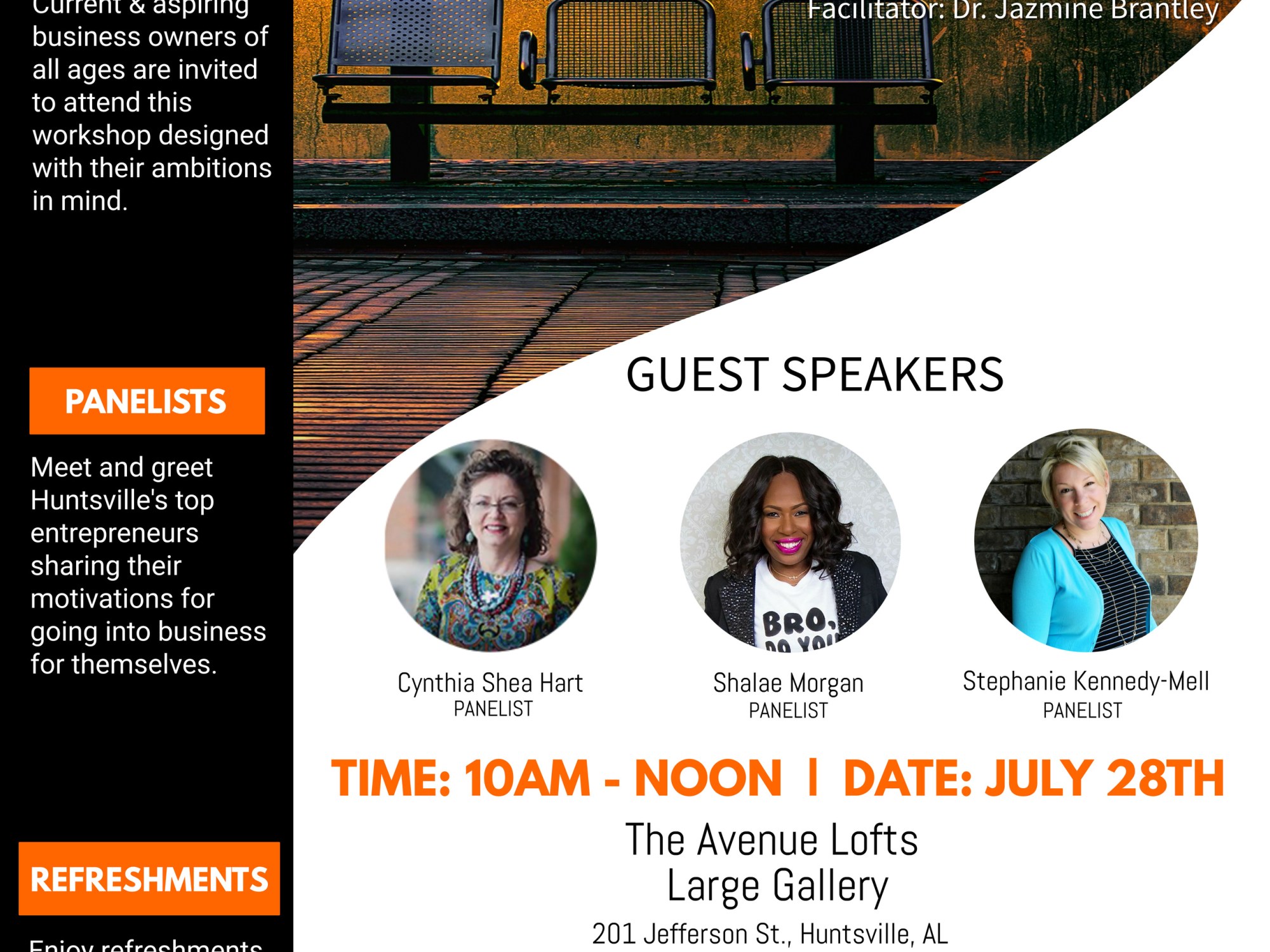 Current and aspiring business owners of all ages are invited to this workshop designed with their ambitions in mind. The workshop is free and courtesy refreshments will be provided. You can register by calling 256-372-4966. Hope to see you there!